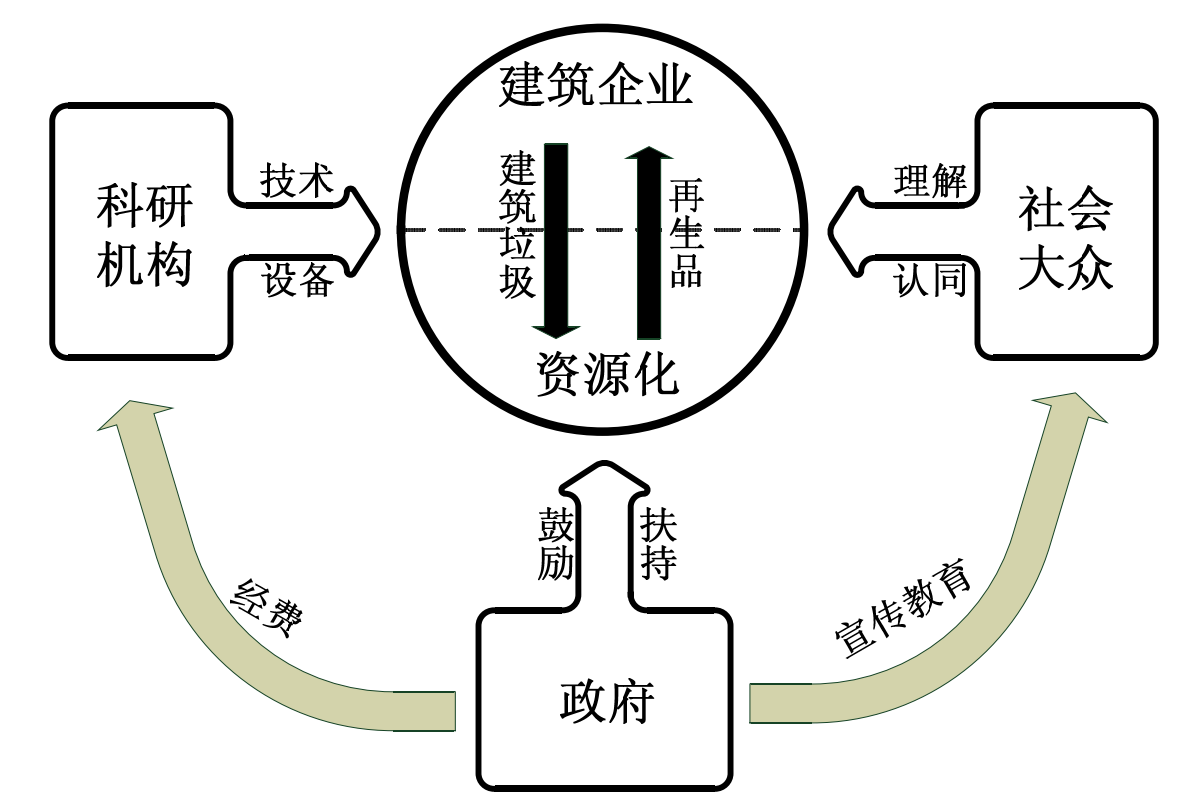 建筑垃圾資源化不能僅是建筑企業(yè)一家要考慮的事,它需要得到政府、社會大眾、科研機構(gòu)等相關(guān)人員及團(tuán)體的支持。建筑垃圾資源化由于剛起步,目前產(chǎn)生的利潤有限,受重視程度不高,但其社會與環(huán)境意義重大,因此,需要政府部門的扶持與幫助。此外,還需要社會大眾理解和科機構(gòu)的技術(shù)支持。